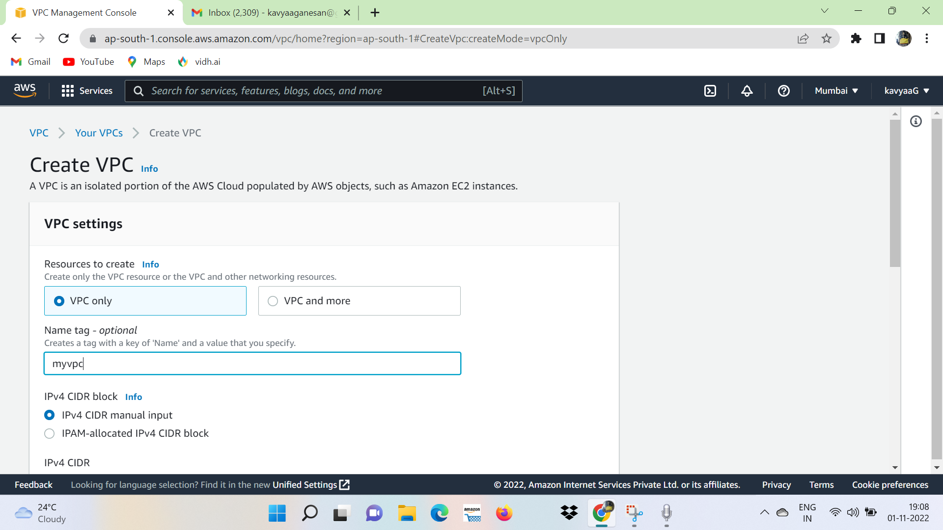 Under Resources to create, choose VPC. -> IPv4 CIDR block: Choose an IPv4 CIDR for the VPC. This option is required..png)